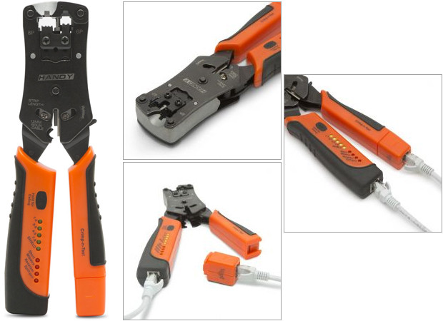 6P4C, 6P6C, 8P8C moduláris csatlakozójú dugókhoz, beépített kábeltesztelővel.