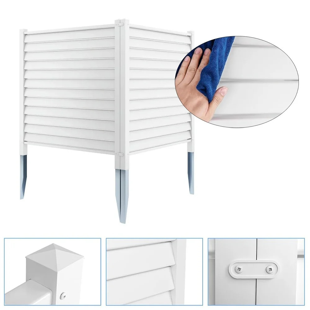 Ez a fehér, műanyagból készült leszúrható kerítéspanel ideális megoldás udvari területek rendezésére. Tökéletesen alkalmas klíma kültéri egységek, kukák vagy kutyakarámok takarására. Egyszerűen telepíthető, stabil szerkezetű és modern, letisztult megjelenést ad a kertednek.