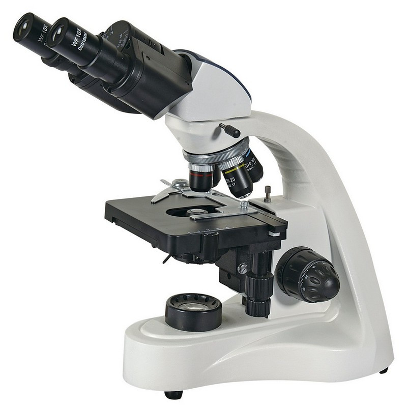 A szemlencsék és az objektívlencsék gombásodásgátló bevonattal ellátott optikai üvegből készülnek. A 10-szeres nagyítási fokot kínáló szemlencsén keresztül jól láthatók a kiterjedt minták is. A mikroszkópot akromatikus objektívlencsével szereltük fel. A mikroszkóp nagyítási foka a revolverfej elforgatásával módosítható. A 100-szoros objektívlencse olajimmerziós megfigyelésekhez is használható (egy palack immerziós olaj a készletben is megtalálható). A magas nagyítási fokú objektívlencsék rugóterhelésű keretekkel rendelkeznek.
