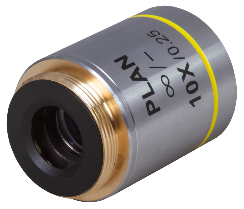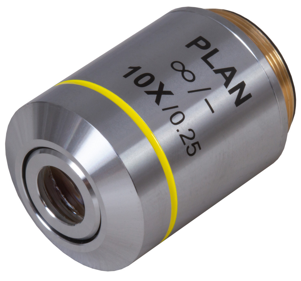 A Levenhuk MED 10x végtelen-plan-akromatikus objektív végtelenre korrigált mikroszkópok tartozéka. Az ilyen mikroszkópok klinikai és diagnosztikai laboratóriumi szakemberek számára nagyszerűek, mivel lehetővé teszik további kutatóeszközök használatát, például polarizációs szűrőket, fáziskontrasztos eszközöket stb.