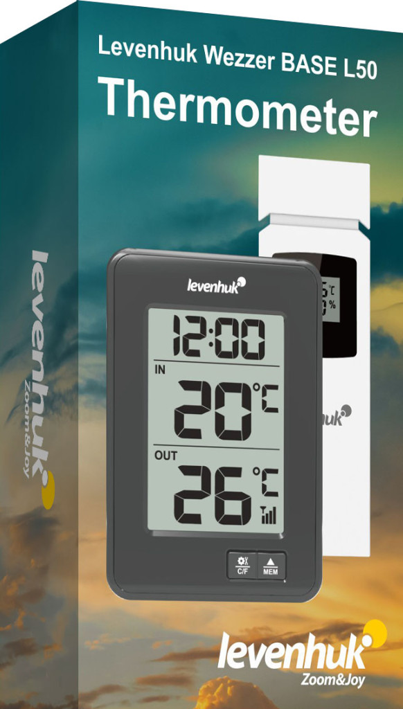 A Levenhuk Wezzer BASE L50 hőmérő a beltéri és kültéri hőmérséklet mérésére is alkalmas. Hozzájuthat a legpontosabb helyi időjárási adatokhoz anélkül, hogy igénybe kellene vennie bármilyen harmadik fél időjárás-előrejelzési szolgáltatásait. Ön mindig tisztában lesz azzal, mikor fordulhat hirtelen hidegre az idő. A hőmérőhöz távoli érzékelő tartozik, amely a külső hőmérséklet mérésre és a páratartalom szintjének rögzítésére szolgál. Az érzékelő az alaphoz csatlakozik – a berendezés működéséhez nincs szükség kábelre.