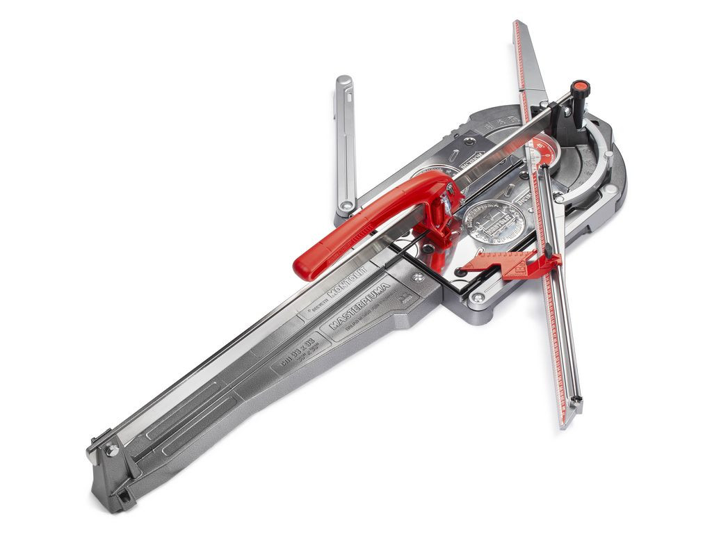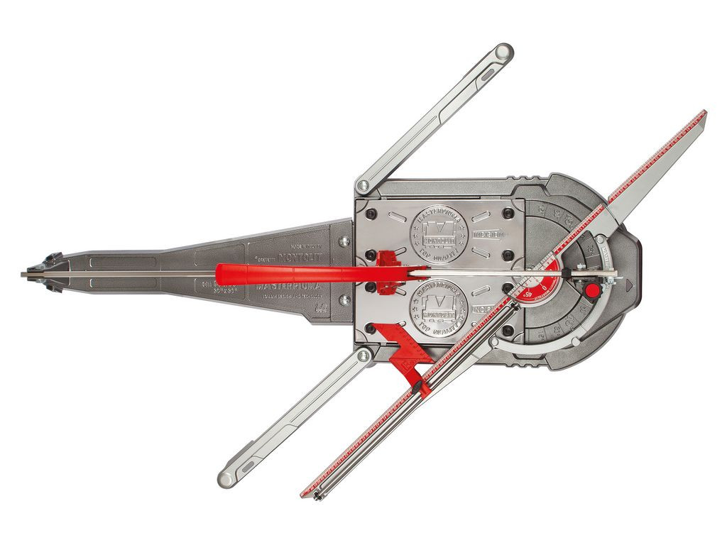 Montolit csempevágó Masterpiuma 93 cm A MONTOLIT Masterpiuma gépek legújabb sorozata a P5 széria. A könnyű alumínium alaptest a legnagyobb igénybevételnek kitett pontoknál plusz bordákkal van megerősítve, így optimalizálva a vágógép viselkedésést akár vastag vagy kemény anyagok vágásáról legyen szó. A meghosszabbított számsoros vonalzó jobbra és balra is elforgatható 45°-ban. Nagy pontossággal végezhetőek a párhuzamos vagy keresztirányú vágások. Az ismétlődő vágásokhoz használható kisderékszög rögzíthető és ebben az állapotban felhajtható, így nem kell a méretet elállítani ha esetleg egy nagyobb vágásra van szükség. Nagyméretű rugós lemez és mindkét oldalon kihajtható laptámaszok biztosítják a burkolóanyag tökéletes felfekvését a csempevágón. A speciális vágókar is egyedi megoldásokat tartalmaz. Ennek köszönhetően akár 20 mm vastag lapot vagy üvegmozaikot szeretnénk vágni, mindig a megfelelő karcolási- és törő erő áll rendelkezésre. A vágókarba integrált olajozó rendszer gondoskodik a könnyű és egyszerű használatról. Főbb jellemzők: Könnyű súly Precíz vágás Nagy törőerő Vágókarba integrált olajozó rendszer Praktikusan és egyszerűen szállítható Pontos és rendkívül erős, ergonomikus nyomógombos fogantyú. Vágás hossz: 930 mm Ferde vágáshossz: 660 mm Vágási vastagság: 0 - 20 mm Vágókerék mérete:16 mm Súly 15 kg
