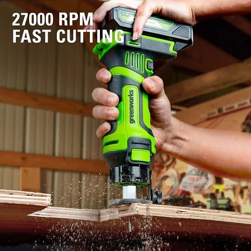 A 24V-os lítium-ion akkumulátor biztosítja a szükséges energiát a különböző anyagok hatékony marásához. 31,5 mm-es vágási mélységével fába, valamint a megfelelő marófej kiválasztásával más anyagokba, például műanyagba, alumíniumba vagy rézbe is vághat. A marógép kompatibilis a Greenworks 24V-os akkumulátor-platformjával, így ha már rendelkezik más Greenworks 24V-os szerszámmal, akkor nem kell új akkumulátort vásárolnia.