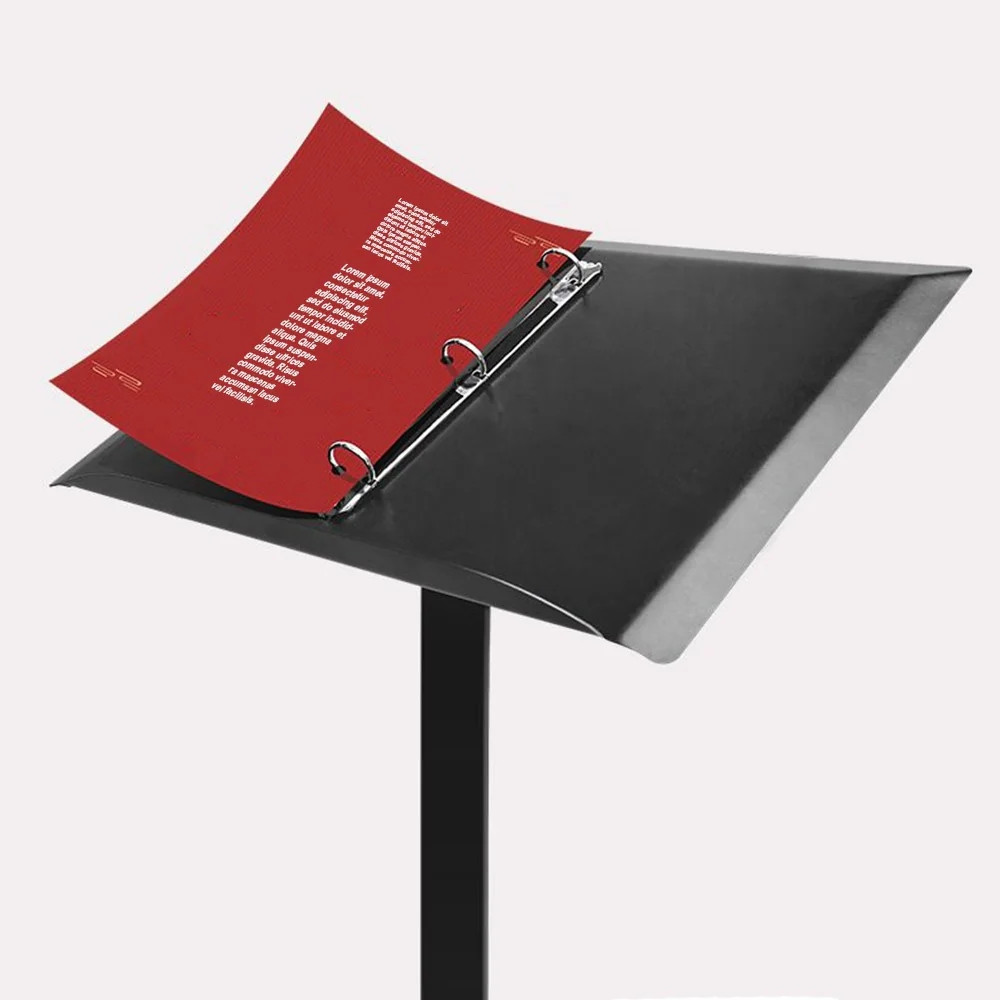 Ez az állvány stílusos és letisztult dizájnjával bármilyen környezetben kiválóan mutat. Ideális éttermek menüinek bemutatására, rendezvények információs állványaként vagy akár irodai dokumentumtartóként. Masszív felépítése és modern megjelenése garantálja, hogy mindenki figyelmét magára vonzza.