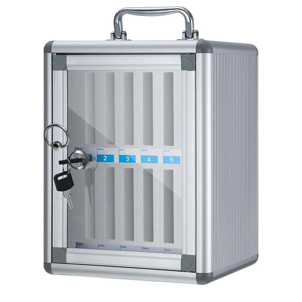 Ez a széf különösen jól jöhet olyan helyeken, ahol a telefonokat központilag tárolják, és biztosítani kell, hogy mindig visszakerüljenek a megfelelő helyükre. Az egyszerű zárási mechanizmus gyors hozzáférést tehet lehetővé azok számára, akik jogosultak a használatára, miközben távol tarthatja az illetékteleneket.