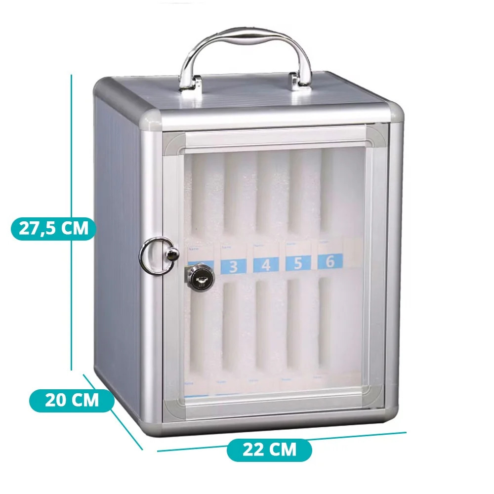 Biztosítsd a mobiltelefonok biztonságos és rendszerezett tárolását ezzel a kompakt, 12 férőhelyes mobiltelefon széffel. A szivacsos bélés óvja a készülékeket a karcolásoktól, míg a kulcsos zár gondoskodik az illetéktelen hozzáférés megelőzéséről. Ideális megoldás irodák, iskolák és rendezvények számára, ahol a szervezettség és védelem kiemelten fontos!