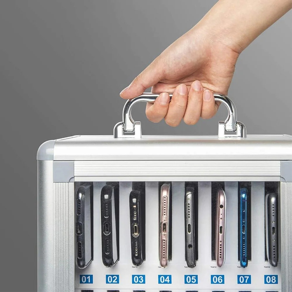 A széf szivacsos bélése óvhatja a telefonokat az ütődésektől és karcolásoktól, így a tárolás nemcsak biztonságos, hanem kíméletes is. A két soros kialakításnak köszönhetően a készülékek rendezetten helyezhetők el, így mindegyik telefon azonnal megtalálható, amikor szükség van rájuk.
