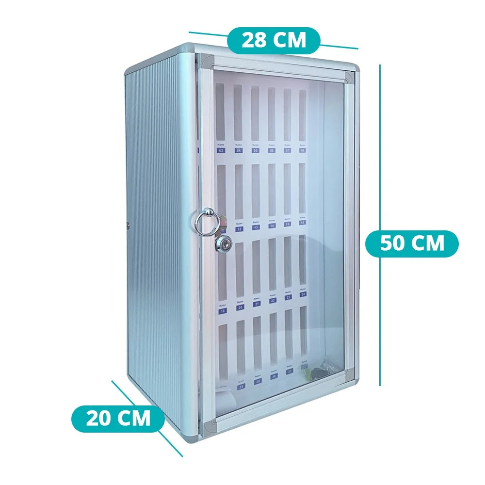 Biztosítsd a mobiltelefonok biztonságos és rendszerezett tárolását ezzel a kompakt, 32 férőhelyes mobiltelefon széffel. A szivacsos bélés óvja a készülékeket a karcolásoktól, míg a kulcsos zár gondoskodik az illetéktelen hozzáférés megelőzéséről. Ideális megoldás irodák, iskolák és rendezvények számára, ahol a szervezettség és védelem kiemelten fontos!