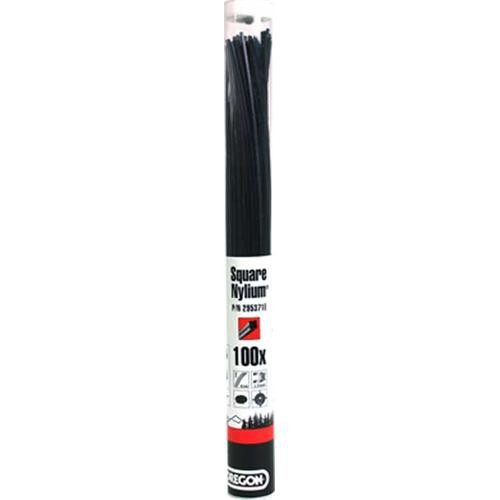 Oregon gyártmányú Nylium típusú, 50 darab 42 centiméteres előre szabott damilszálak, 3.75 mm átmérőjű, szögletes profilú.