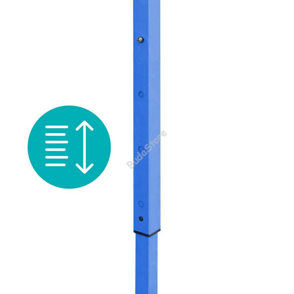 A pavilon fém vázzal rendelkezik, amely kellő stabilitást biztosít, ugyanakkor könnyű szerkezetének köszönhetően egyszerűen mozgatható és szállítható. A gyorsan kihajtható elemek lehetővé teszik a gyors összeállítást és lebontást, így időt és energiát spórolhatsz meg.