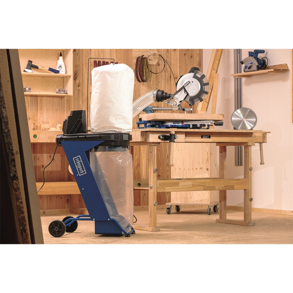 A fával történő munkálatok során szükséges egy hatékony elszívó használata, mely megvédi Önt és a gépeit a kellemetlen portól. Így tisztán tarthatja a műhelyét, kényelmesen dolgozhat és a por sem fogja veszélyeztetni az egészségét. A Scheppach DC 500 ehhez nyújt ideális megoldást! Jellemzői a kompakt dizájn, nagy teljesítményű, 550 W-os motor, minőségi gyűjtőzsák, nagy, 75 literes kapacitással és kiváló minőségű szűrőfunkció. A könnyebb szállíthatóságot kerekek segítik. Ingyenesen a gép tartozéka a 4-részes csatlakozó adapter, mellyel különböző gépekhez csatlakoztathatja az elszívót.