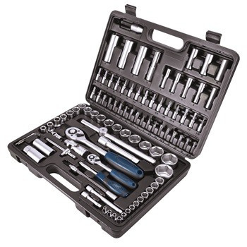 Masszív kofferben elhelyezett készlet a legszükségesebb eszközökkel (94 db) amelyek csavarozáshoz kellenek.