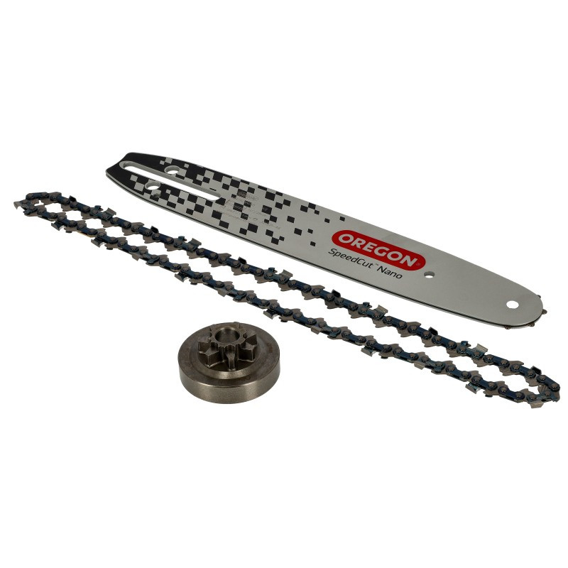 A szett tartalmaz 1db SpeedCut Nano 104TXLNA095 cikkszámú vezetőt, 1db 80TXL046E cikkszámú láncot és 1db 627943 cikkszámú csillagkereket.