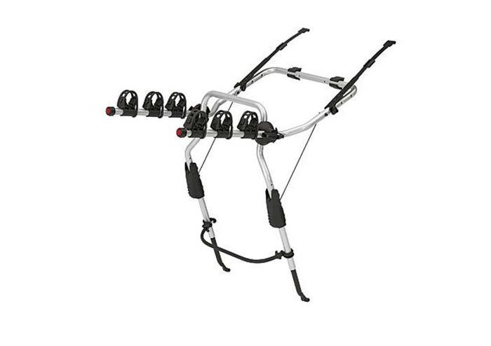 3 kerékpár szállításához. Praktikus tartó, rugalmas rögzítéssel kombikhoz és ferdehátú autókhoz. Az autóval és a kerékpárokkal érintkező összes felület gumibevonattal rendelkezik. Gyorsan összehajtható, így tárolása egyszerű.  Az autóra történő rögzítéshez szükséged lehet 9110, 9111, vagy 9115 autóspecifikus rögzítőkitek egyikére. A KRESZ-nek a 976 világító rendszámtartóval felel mmeg. Méret: 77×57×97 cm, 82×57×116 cm. Teherbírás/önsúly: 9103 – 45 kg/6.1 kg, 9104 – 45 kg/7.1 kg.