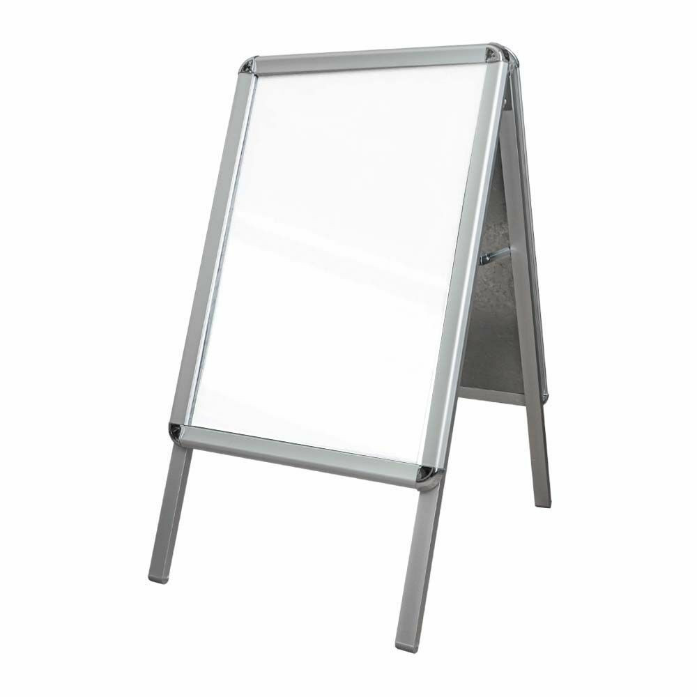 A figyelemfelhívó, alumínium megállítótábla tökéletes választás üzletünk, vállalkozásunk reklámozására, emellett irodában is használható információnyújtás céljából. Átlátszó, műanyag előlapjának köszönhetően belehelyezett plakátunk megfelelő védelmet kap az eső, és a por ellen. 78x58 cm-es plakát helyezhető bele.