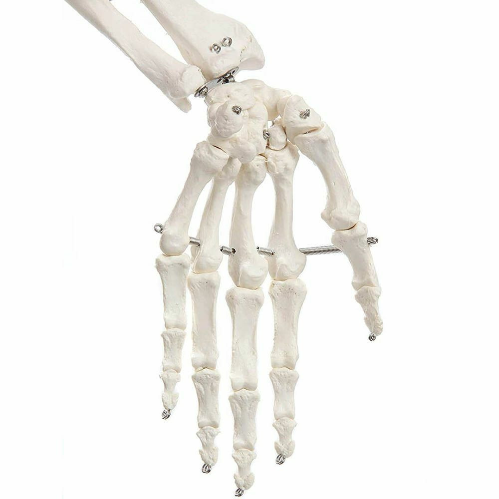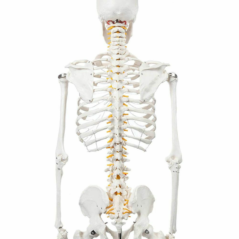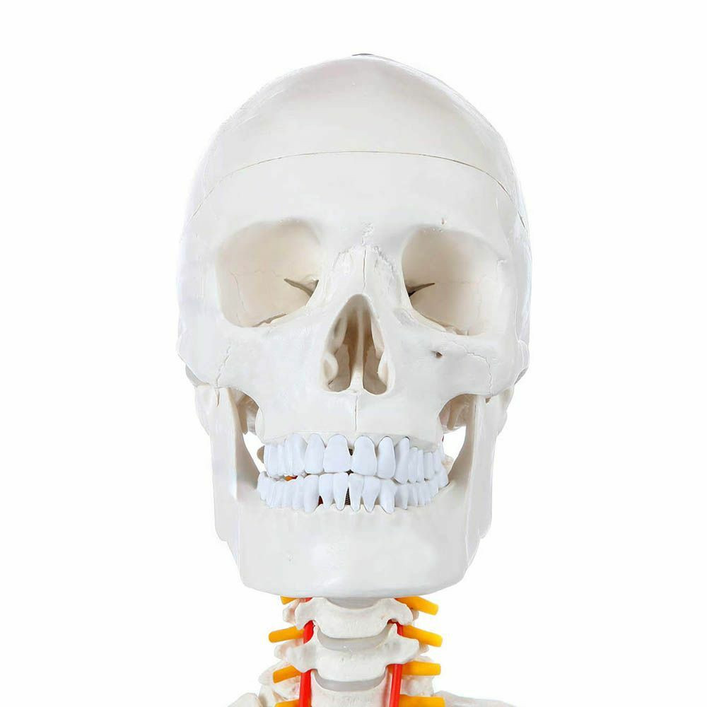 Az anatómiai csontváz modell ideális oktatóeszköz kórházakban, iskolákban, egyetemeken és laboratóriumokban. A modell segítségével megismerhető az emberi test, a csontváz felépítése. A koponya két részre szedhető, így lehetőség nyílik annak részletesebb megvizsgálására. Az alsó állkapocs mozgatható a rágóeszközök szemléltetéséhez. 3 db fog tartozik a csomaghoz (2 db metszőfog és 1 db őrlőfog), 2 db kivehető az állkapocsból. Az életnagyságú csontváz lábai levehetőek, így a végtagok közelebbről megvizsgálhatók. A könnyebb mozgatás érdekében egy görgős fém állvány is tartozik a modellhez, aminek segítsével egyszerűen áthelyezhető és szállítható. A csontváz anyaga műanyag és szilikon, 206 db csontból áll.