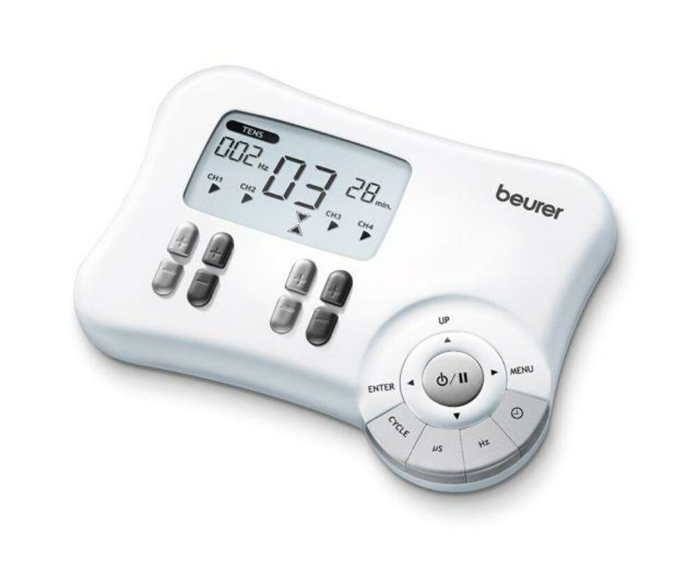 EM 80 digitális elektromos izomstimerősítő: - 3 in 1: TENS (idegek, fájdalom), eMS (izom), masszázs (relaxáció) - 8 öntapadó elektróda (4 külön felhelyezési mód) - 30 előre programozott felhasználás (TENS/EMS/masszázs) - 20 szabadon beállítható program (frekvencia, pulzálási szám, időbeállítás) - Doctor';s Funkció: egyéni programmal való ideális összehangolás - Beállítható egyéni kezelésidő (5-90 perc) - Hátralévő idő kijelzése - Könnyen értelmezhető, megvilágított kijelző - Ergonómikus dizájn - Biztonsági kikapcsoló - Kimeneti feszültség: max. 180 mA p-p (500 Ohm) - Kimeneti teljesítmény: 1-120 Hz - Pulzálás: 40-250 µs szakaszonként - Pulzálási forma: 2-fázisú, négyzet alakú - Részletes használati útmutatóval (alkalmazási lehetőségeket is tartalmaz) - Elemekkel - Tárolódobozzal - 8 öntapadó elektróda