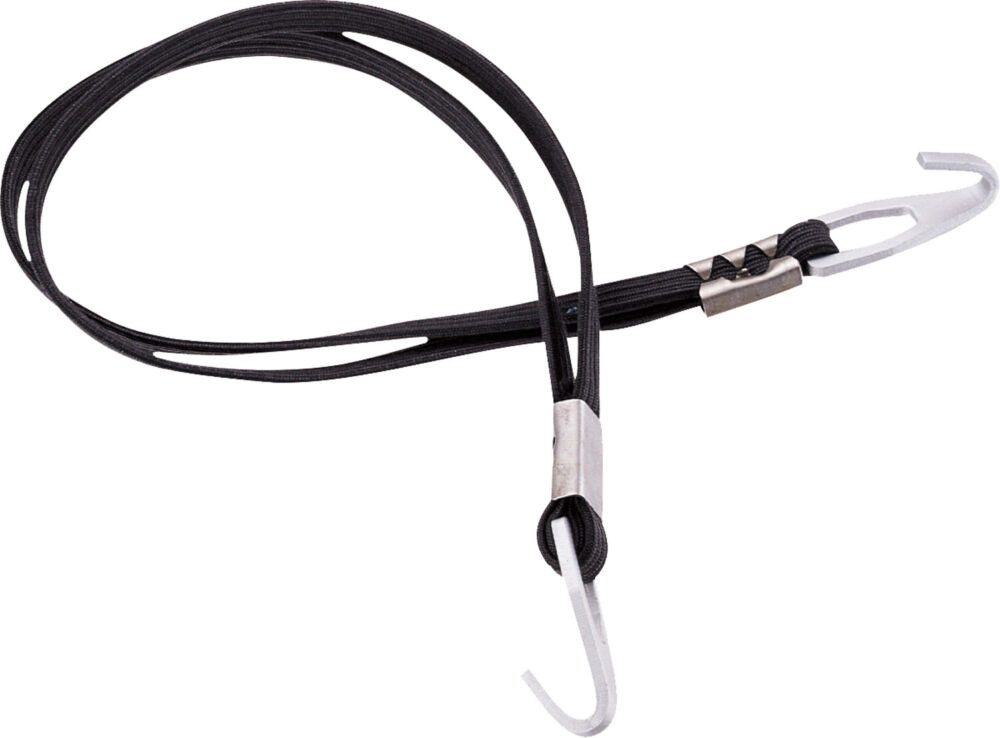Rugalmas dupla rögzítőpánt csomagtartóra. Az univerzális alumínium kampók segítségével a legtöbb csomagtartótípushoz használható. Hossz (laza állapotban) 580 mm.