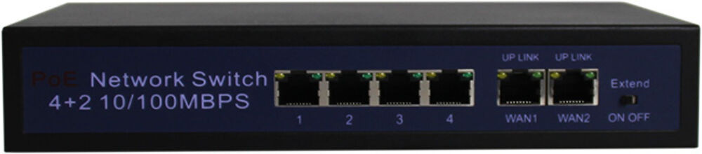 Hálózati kapcsoló, PoE, 4 port, 10/100 Mbps, Uplink, 200 m.