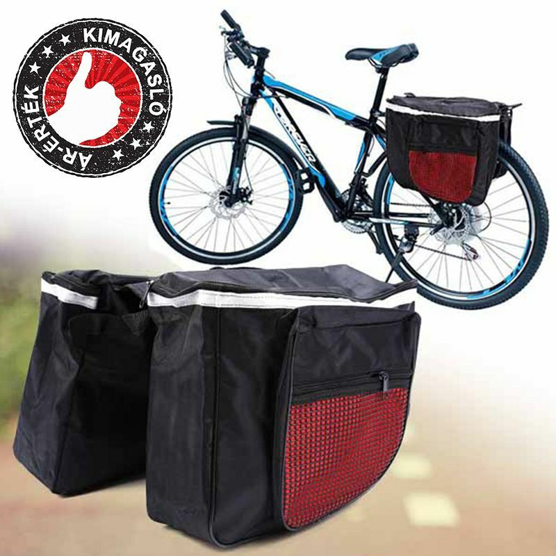 A kerékpárral közlekedők és túrakedvelők jól tudják, hogy egy kerékpártáska szinte nélkülözhetetlena szükséges holmik számára. Dupla kerékpártáskánk 25 literes űrtartalommal, 2 kisebb és 2 nagyobb zsebbel rendelkezik, a hátsó ülésre/vázra helyezhető. Kisebb túrákra, kirándulásokra kifejezetten alkalmas.