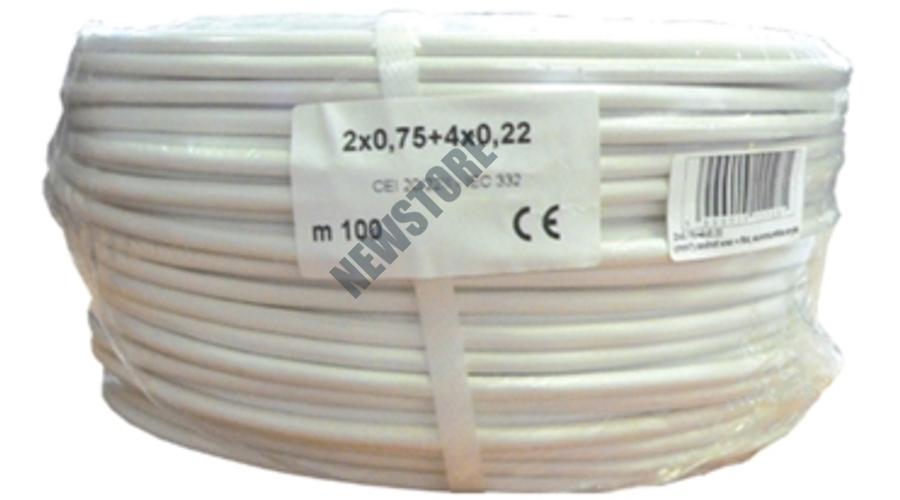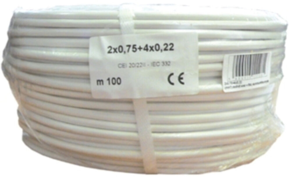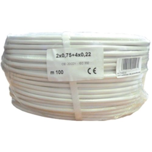 2x0.75+4x0.22 eres, erősített biztonságtechnikai kábel, alumíniumfólia árnyékolás, 100m.