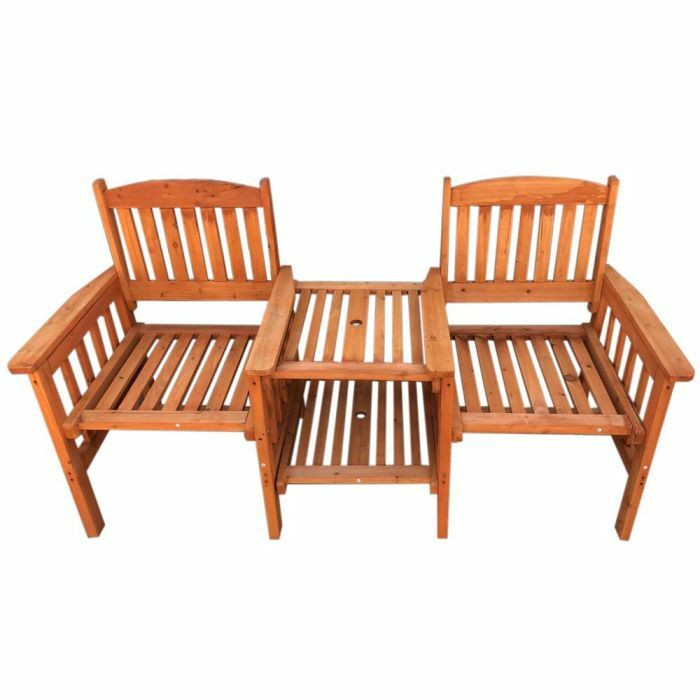 A fa 2 személyes kerti garnitúra igazán különleges kialakítással bír, a székek és a középen elhelyezett asztal ugyanis egymáshoz vannak rögzítve, ezáltal külön-külön a darabok nem mozdíthatók. Ezzel az érdekes kivitelezéssel a garnitúra biztosan egy új színt visz kertedbe, vagy uvdarodba. A középső asztalka 2 asztallappal rendelkezik, melyeken középen egy napernyőtartó lyuk is található, ezzel téve lehetővé a tökéletes nyári kikapcsolódást számodra.