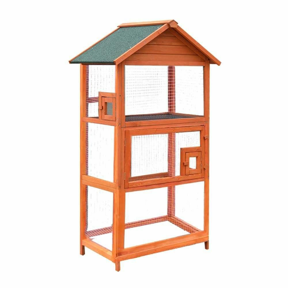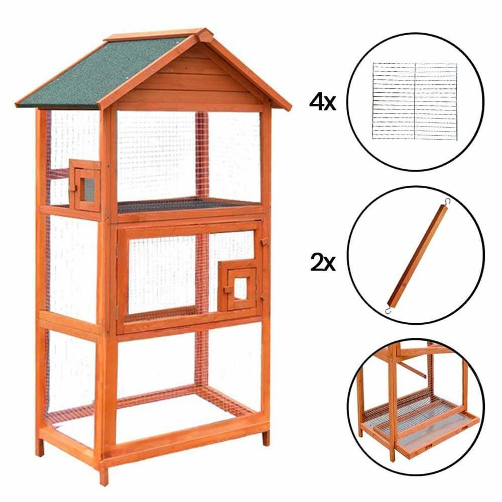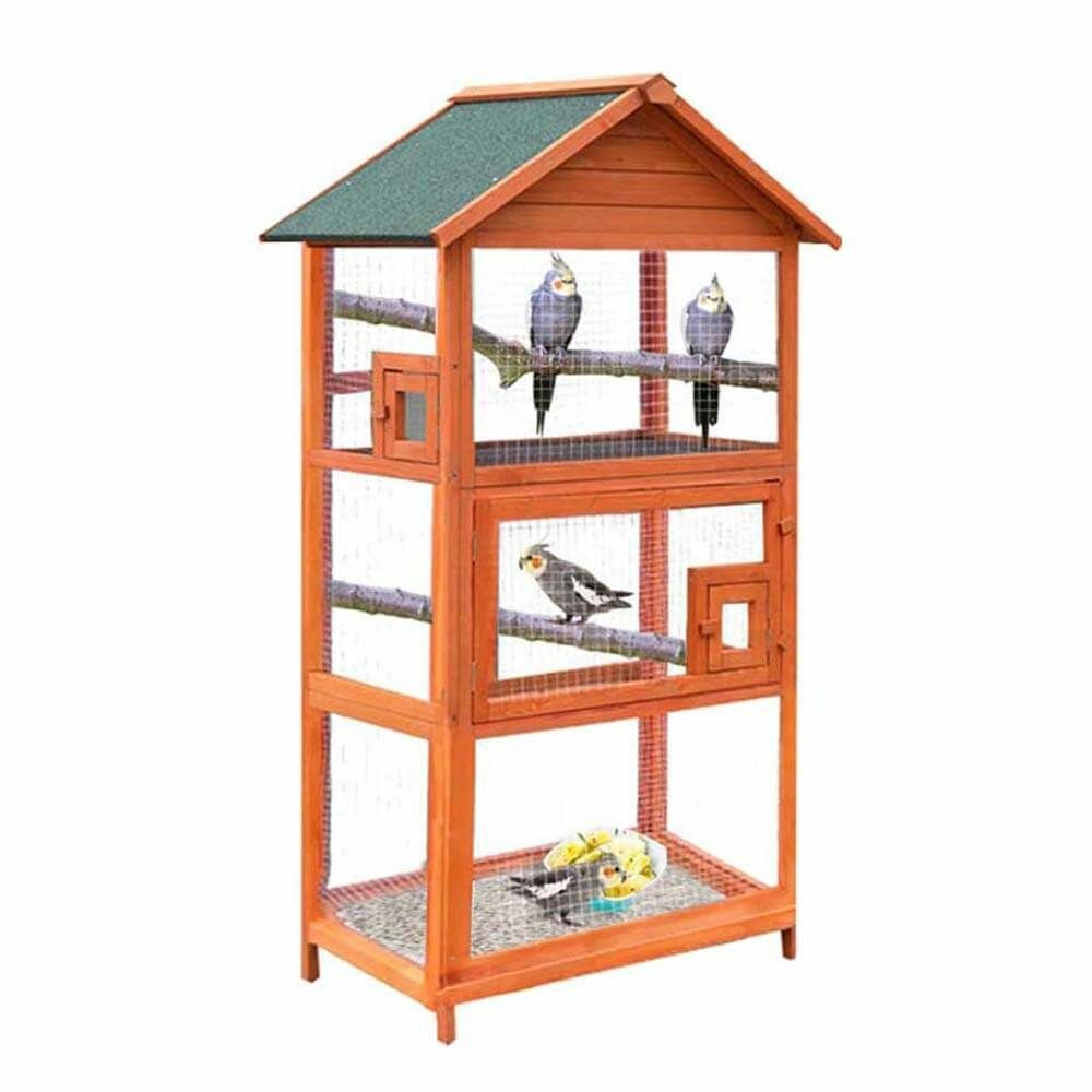 A fából készült madárkalitka kényelmes és tágas lakhelyet biztosít a különféle madarak számára. A drótrácsnak köszönhetően madarainkat biztonságban tudhatjuk, miközben szabadon röpködhetnek a nagy belső térben. A kalitka alján helyezkedik el a kihúzható alumínium ürülékgyűjtő tálca, melynek tisztítása rendkívül egyszerű. A madárkalitkába 2 db fa keresztrudat helyezhetünk el tetszés szerint, melyek tökéletes ülőalkalmatosságot biztosítanak madaraink számára. A belső tér felső része elszeparálható, vagy igény szerint egybenyitható, így kedvünkre alakíthatjuk a kalitka elrendezését.