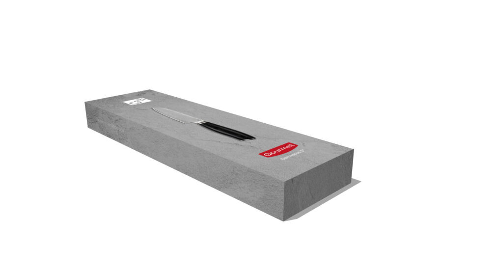 A kés markolata extra erős és ellenállót laminált anyagból készült, ún. Micrata. A micrata egy rétegelt szerkezetű, műgyantával kiöntött alapanyag, melyben nem üvegszál, hanem természetes alapanyag biztosítja a rétegeket. Így készült ez az erős,kemény markolat, mely nem enged az idő múlásának. A kés sima, egyenes, tiszta kialakítása minden konyha díszévé válik.