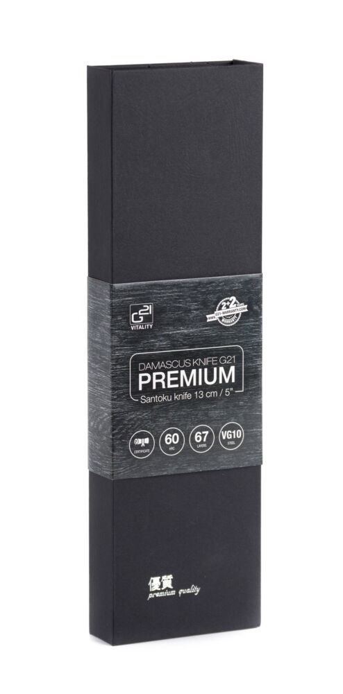 A minőséges G21 Gourmet Damascus Santoku 13 cm-es univerzális, damaszkuszi acélból készült kés tökéletesen fog szeletelni. A kés pengéje minőséges 67 rétegű damaszkuszi VG-10 acélból készült. A kés markolata extra erős anyagból készült, ún. Micrata.