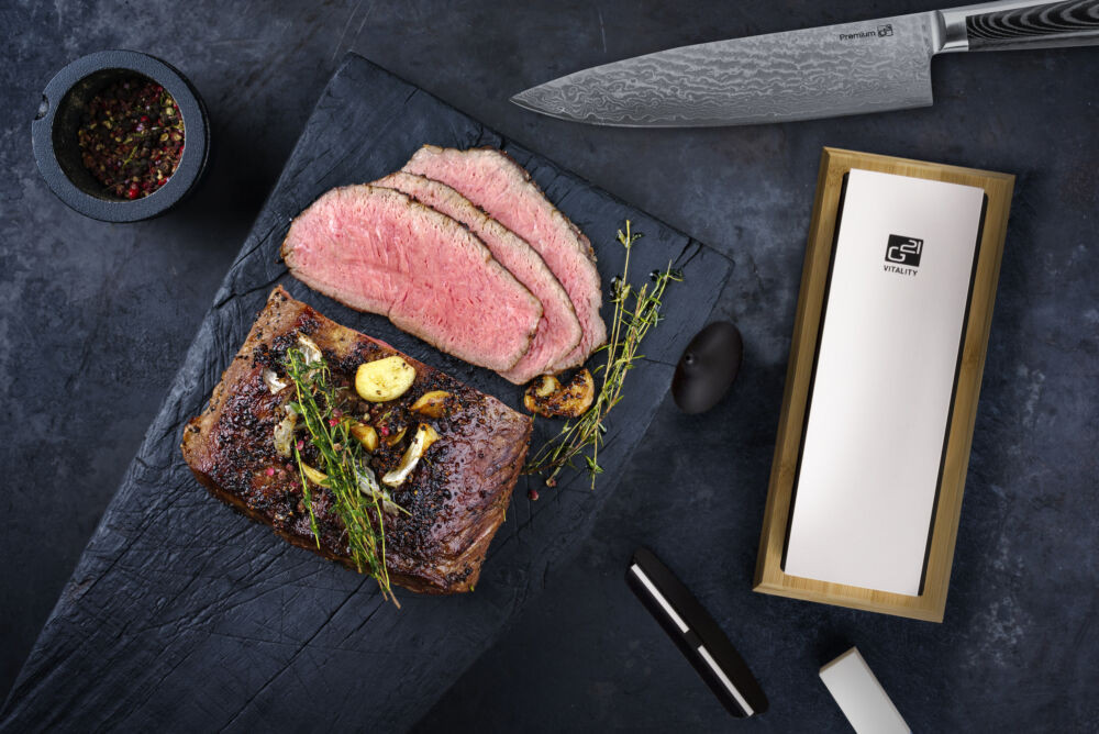 egyenletes mozdulatokkal élezze meg a kést a fenőkövön