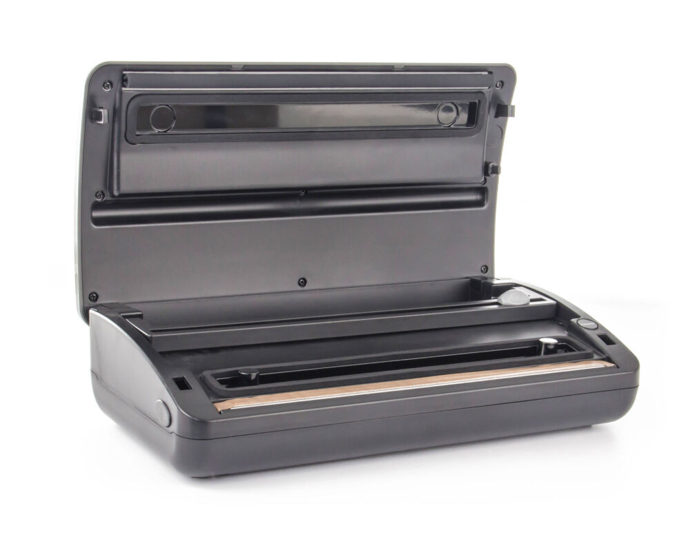 Vákuumcsomagoló tartállyal a tekercseknek, erős szivattyúval tökéletes légmentesítéshez. Marinálás funkció, forrasztás dupla huzallal, legfeljebb 28 cm széles fóliákhoz.