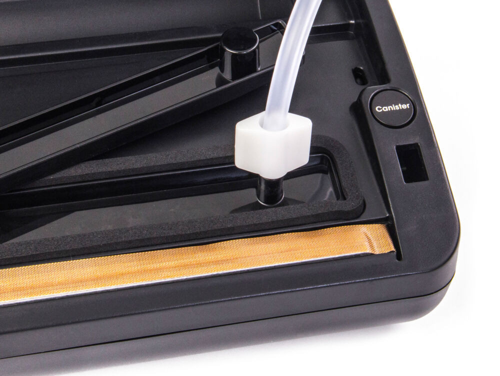 A A G21 Nefrit vákuumozó nemcsak vákuumzsákokból vagy fóliákból tudja kiszívni a levegőt, hanem a vákuumpácoló edényekből is. Csak csatlakoztassa a tömlőt a G21 vákuumpácoló edény nyílásához (a tömlő része a doboz csomagolásának) 1,4 vagy 2 literes térfogattal, nyomja meg a megfelelő vezérlőgombot, és a dobozban lévő levegő megbízhatóan kiürül.