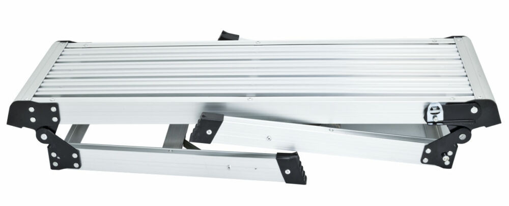 A lábak a kihajtást követően sasszegekkel rögzülnek mindkét oldalon, összerakásnál, azaz a lábak visszahajtásánal viszont manuálisan kell a zárt kioldani. Összecsukható munkaállvány elsősorban kertészek, festők, építőipari cégek, ablaktisztítók számára, vagy külső és belső festés alkalmával javasolt.