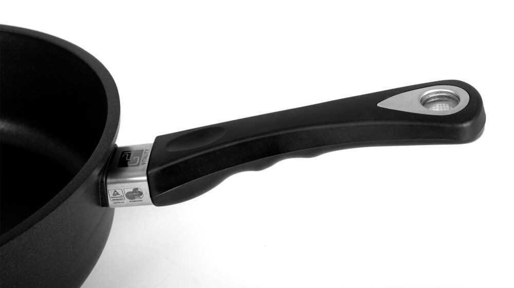 A jobb kezelés érdekében a G21 Pool 28 serpenyőt nemcsak biztonságos és hőszigetelt fogantyúval, hanem markolattal is felszereltük. Így egyszerűen mozgathatja az étellel telepakolt serpenyőt is.