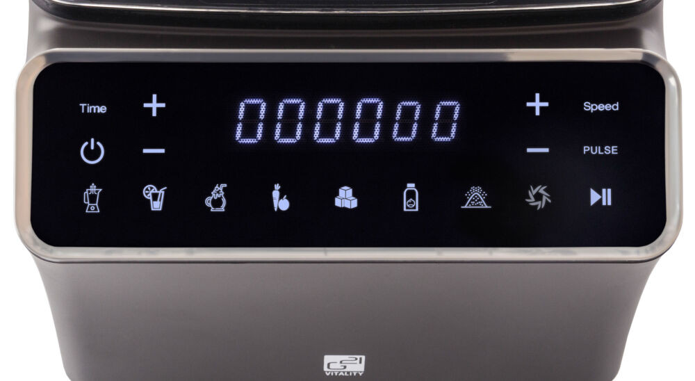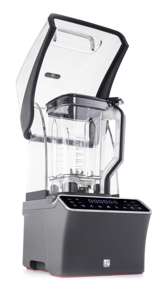 Multifunkcionális vákuum asztali turmixgép, teljesítmény 1500 W, 28 000 fordulat/perc, 1,2 l-es tartály, érintőképernyő, előre beállitott keverési programok, mixel, zúz, őröl, hangszigetelt fedél, biztonsági kapcsoló. Fém fogaskerekek.