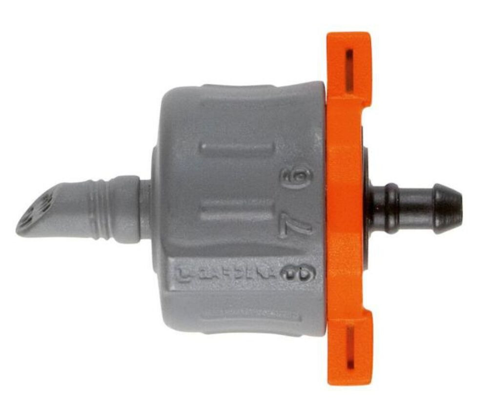 A GARDENA Micro-Drip-System részét képező szabályozható nyomáskiegyenlítős végcsepegtető ideális a különálló növények vagy eltérő vízigényű növényekből álló hosszabb sorok pontszerű öntözésére. A szükséges vízmennyiség a csepegtető mennyiségskálája segítségével állítható be, 1-8 liter/óra tartományban. A csepegtető nyomáskiegyenlítése (1-4 bar) biztosítja az egyenletes vízelosztást - függetlenül a víznyomástól. Az öntisztuló membrán- és labirintustechnológiának köszönhetően garantált a hosszú távú, megbízható működés. Különálló növények öntözéséhez a végcsepegtetőt egy elosztócső (3/16") végébe kell belecsavarni. A 13 mm-es (1/2") vezetékcső a szerelőeszköz (cikkszám: 8322-20) segítségével kilyukasztható; ebbe a lyukba kell beilleszteni a végcsepegtetőt. A csomag öt végcsepegtetőt tartalmaz.