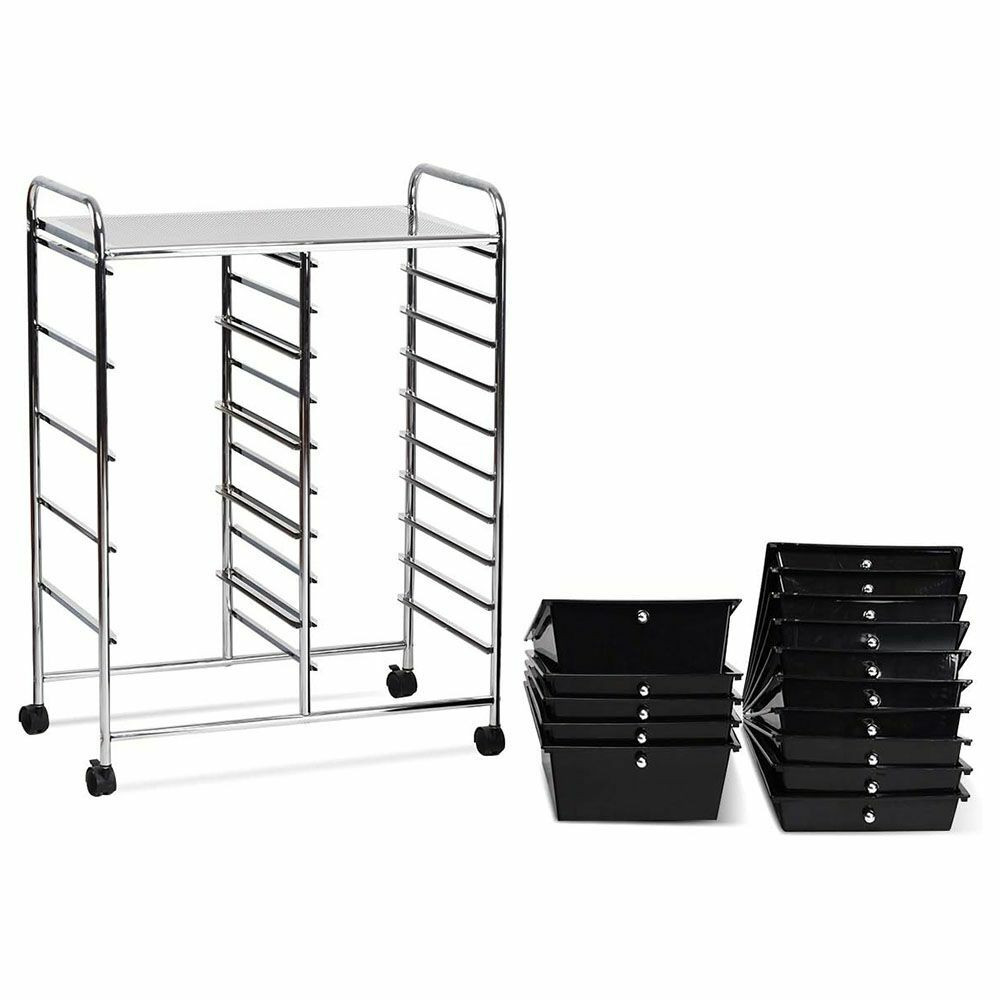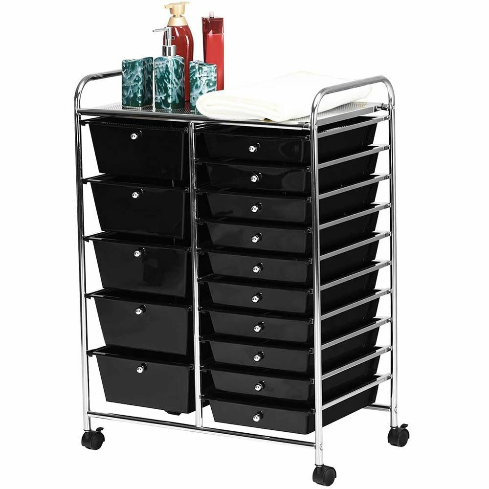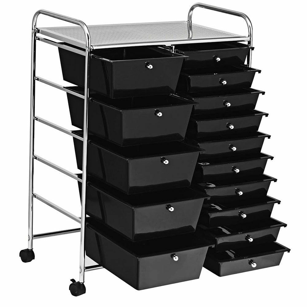 Irodákban, szépségszalonokban de az otthoni háztartásban egyaránt gyakori probléma, hogy nincs elegendő hely a kiegészítők és felszerelések tárolására. Erre jelent praktikus megoldást a 15 fiókos tároló kocsi, mely 5 nagyobb és 10 kisebb méretű fiókkal lett ellátva, így szortírozhatod holmidat és mindennek megtalálhatod a tökéletes helyet. Kerekekkel felszerelt, így megpakolt állapotban is könnyen mozgathatod. Krómozott vázának és letisztult stílusának köszönhetően bármely stílusú helyiségben elhelyezheted.