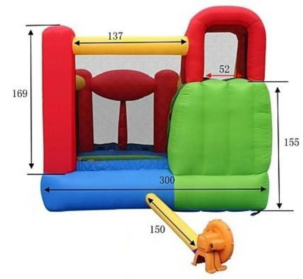 Kiváló minőségű ugrálóvár, melyet a legmagasabb műszaki színvonalon gyártanak. Az anyagokon minden varrás duplán varrott, ezáltal rendkívül tartós és megbízható minőségű. Az ugrálóvárat egy nagy teljesítményű ventilátorral szállítjuk, mely segítségével, mindössze 1-2 perc a légvár felállítása. A ventilátor folyamatosan működik és kellő mennyiségű levegőt juttat a légvárba, hogy azt gyermekeink megfelelően és biztonságosan tudják használni. A légvár természetesen tesztelt és bevizsgált termék, így megfelel az európai előírásoknak. Javasoljuk, hogy a légvárat egy műanyag lapra állítsuk fel az alj védelme érdekében.