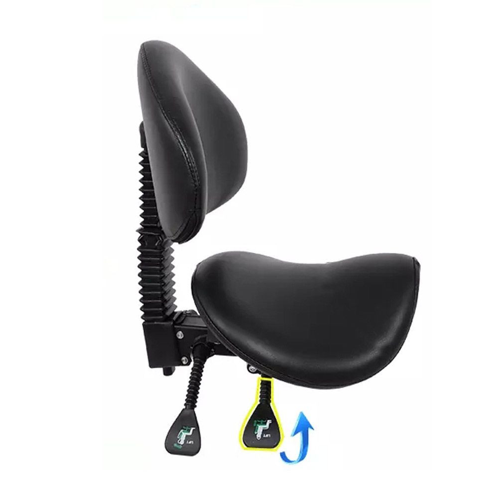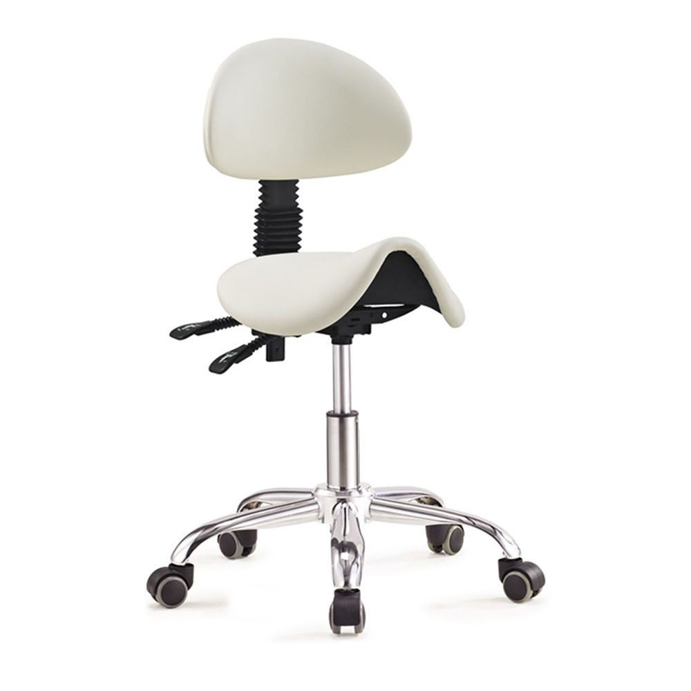 A háttámlás, nyerges forgószék kifejezetten kozmetikai, masszázs vagy tetováló szalonba, vagy akár orvosi rendelőbe is tökéletesen alkalmas. Háttámlája 90 és 120 fok között dönthető, nyerges ülőfelületének magassága állítható, ezzel téve lehetővé a minél kényelmesebb pozíciót számodra. 5 ágú, gurulós csillag lábazata és a 360°-ban forgatható ülőfelülete pedig kellő mobilitást biztosít.