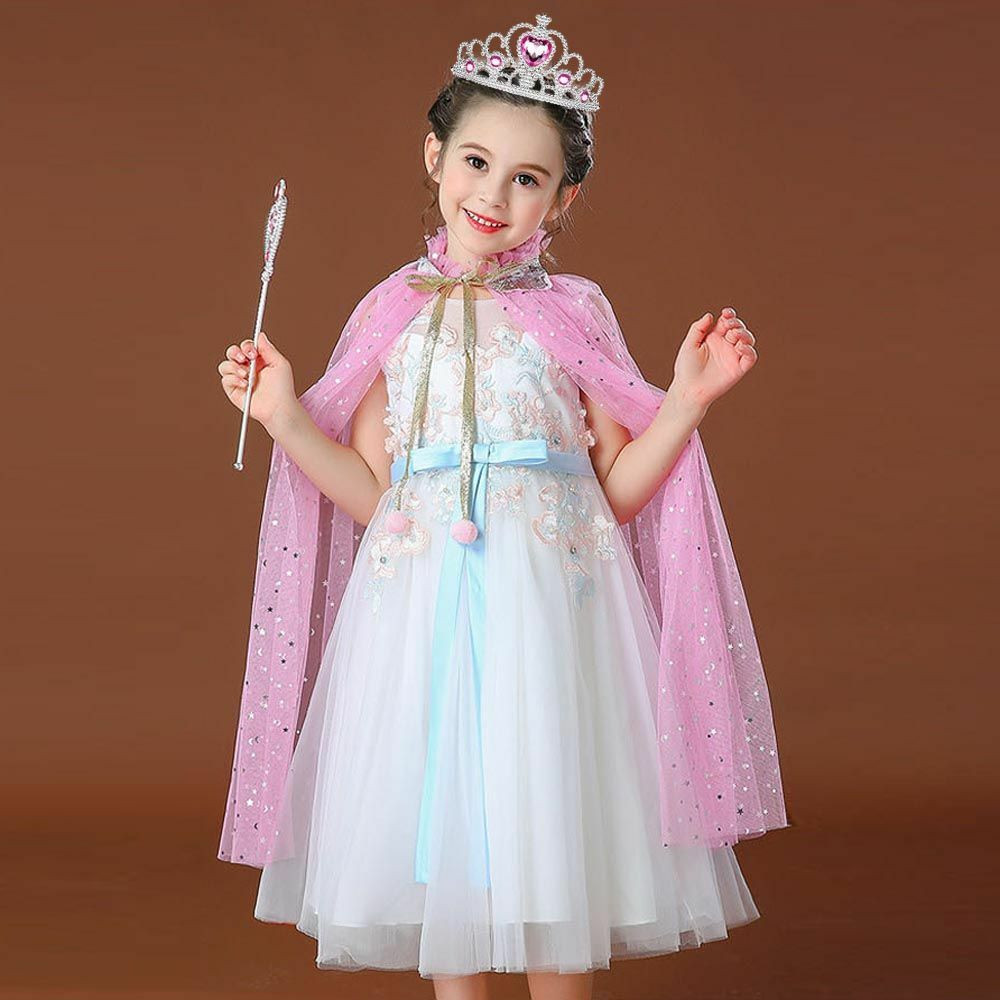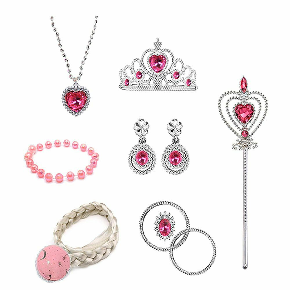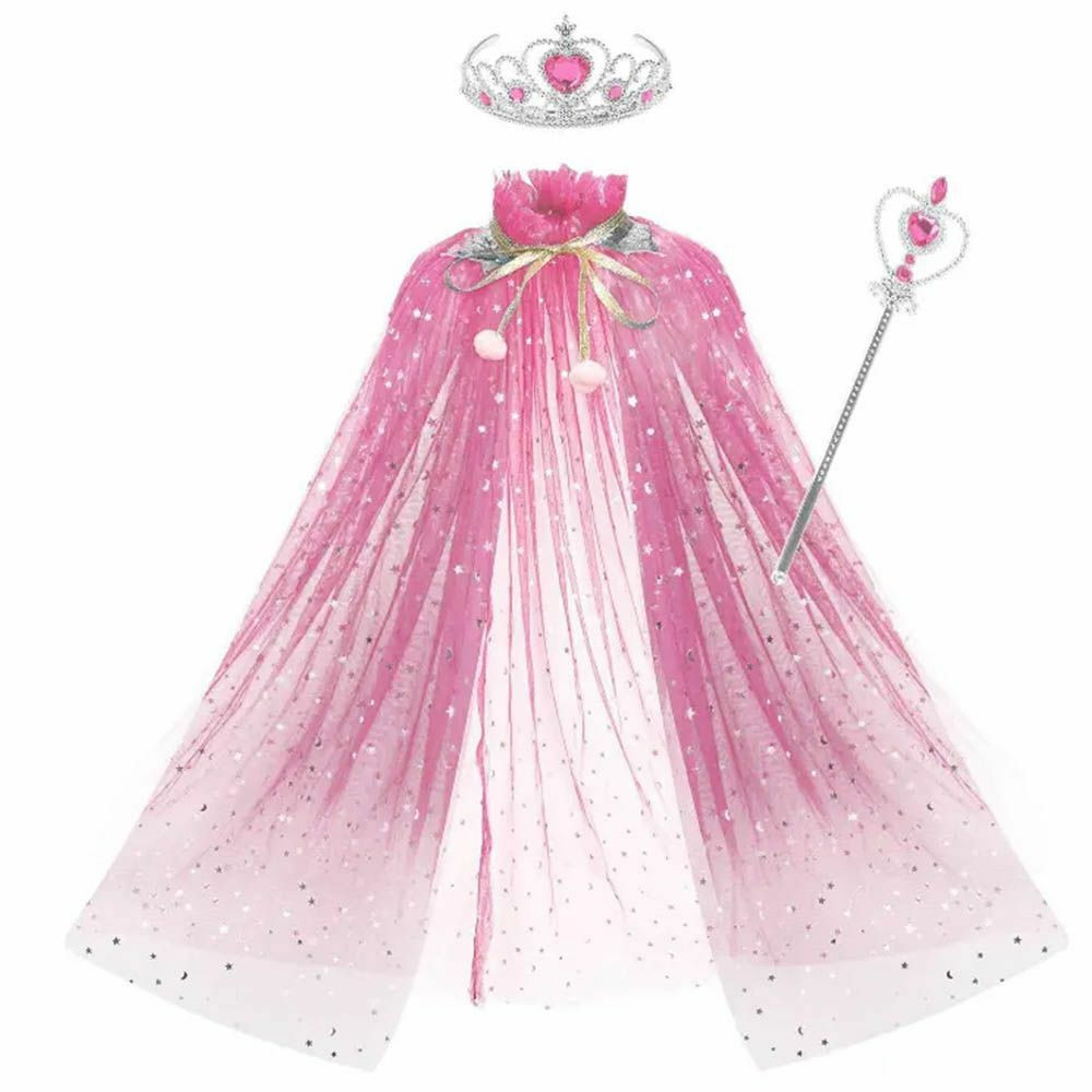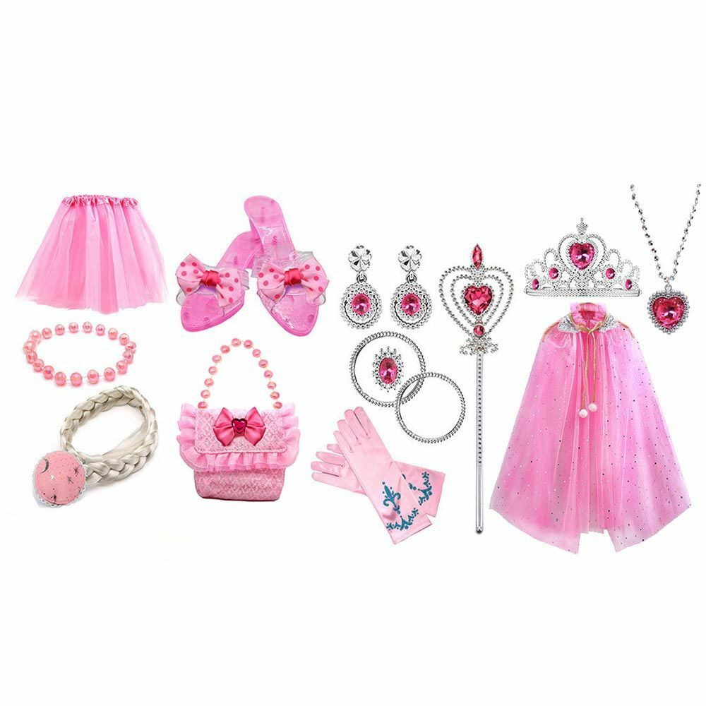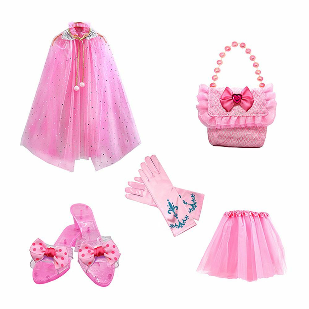 A készlet tartalmaz mindent, amire szüksége lehet. A tündöklő, csillogó tiara elengedhetetlen kellék egy hercegnő számára, mely díszes, rózsaszín kövekkel van díszítve. A készlet tartalmaz még egy nyomott mintás kesztyűt az előkelő megjelenéshez, díszes táskát és kiscipőt is. A palást és kis szoknya teszi teljessé a megjelenést, mely csodás rózsaszín színével minden kislányt elvarázsol. A ragyogó kiegészítőkkel és díszes jogarával feldobhatja megjelenését.