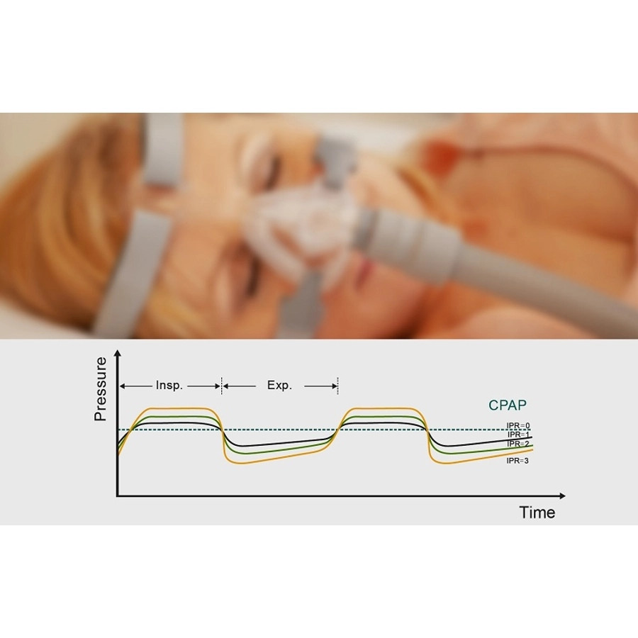 Az IPR (Intelligens nyomáscsökkentés) bekapcsolásával a készülék lehetővé teszi, hogy a felhasználó alacsonyabb nyomást kapjon kilégzéskor, mint belélegzéskor, további örömöt biztosítva a folyamatos pozitív légutak nyomáskezeléséhez.