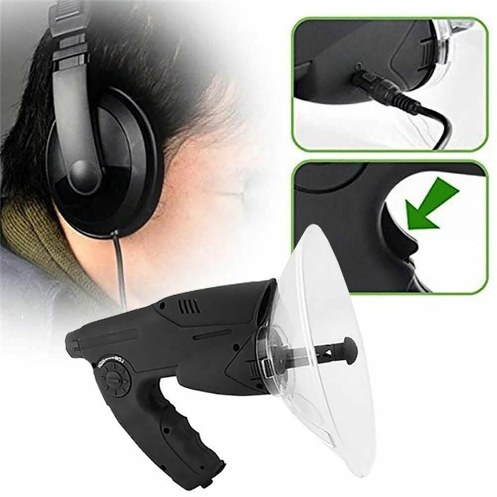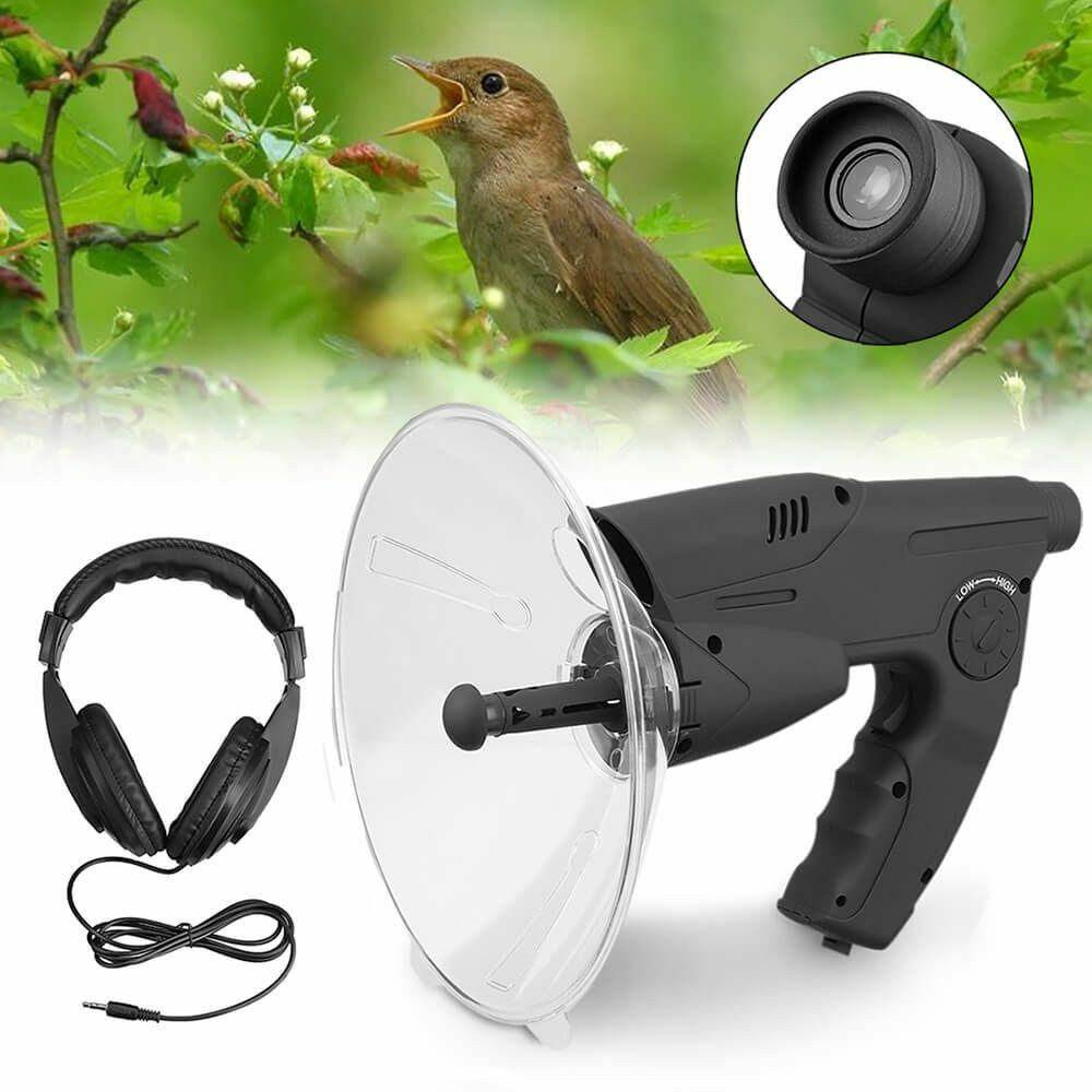 A természet szerelmeseinek ideális választás az irányított parabolikus mikrofon fejhallgatóval, és beépített optikával. Tökéletes állatok megfigyeléséhez, tanulmányozásához, vadászathoz, vagy különböző természethangok rögzítéséhez. A felvételek egy digitális chip segítségével kerülnek rögzítésre, amelyről azonnal visszajátszható, vagy hagyományos magnóra, számítógépre továbbítható. A több mint 100 méteres hatósugárnak köszönhetően kényelmes távolságból hallgathatjuk a természet hangjait. A beépített, nagy teljesítményű optikának hála 8-szorosan megközelítve, alaposan megvizsgálhatjuk amit látni szeretnénk.