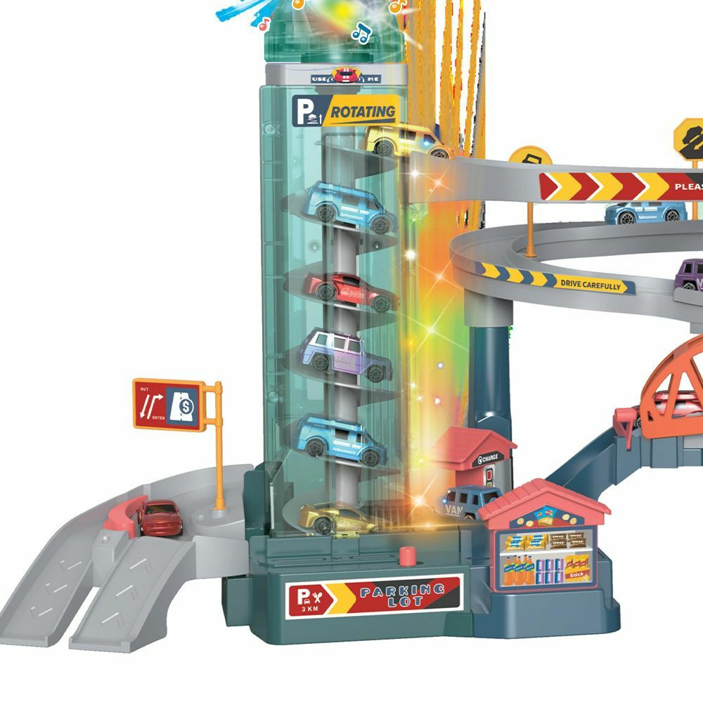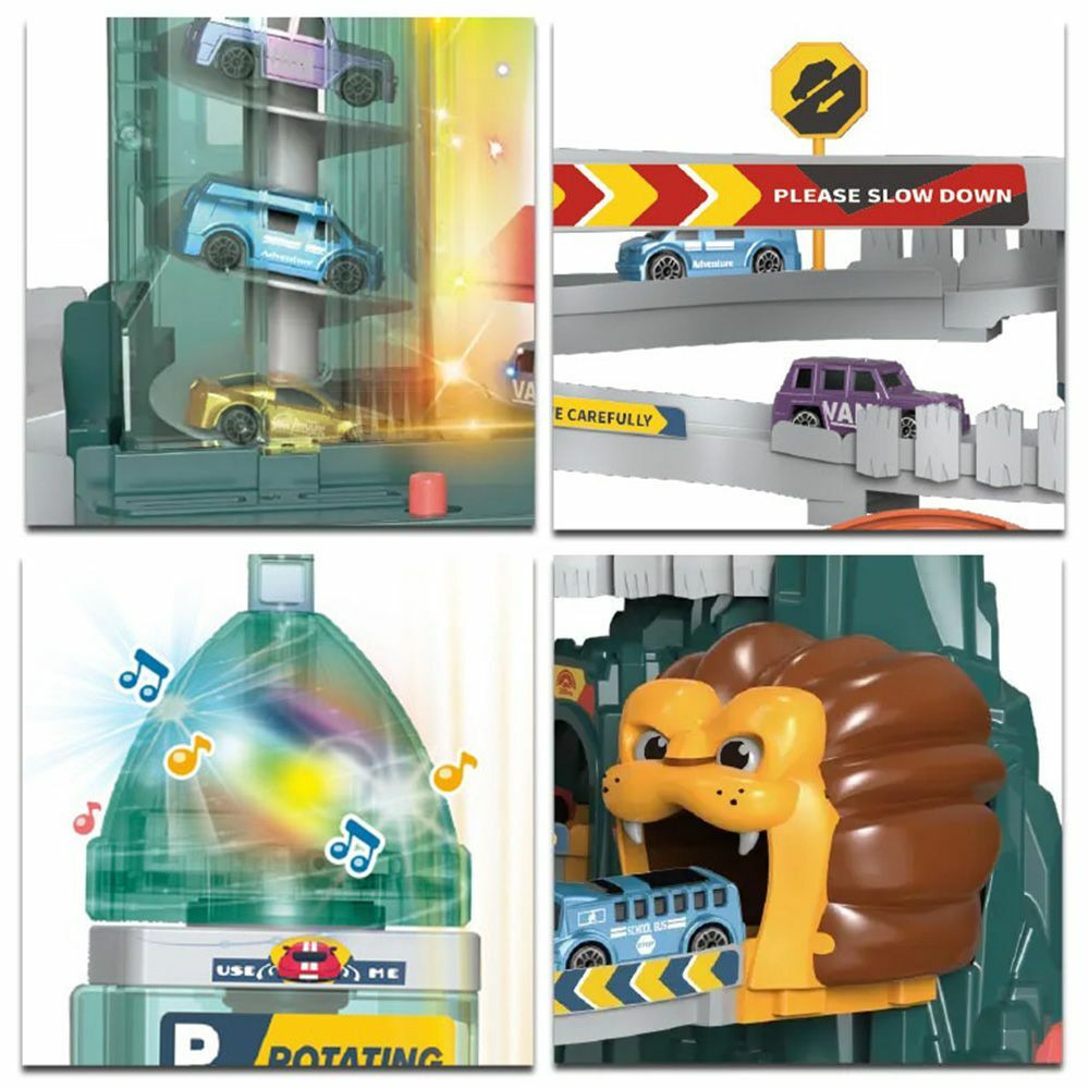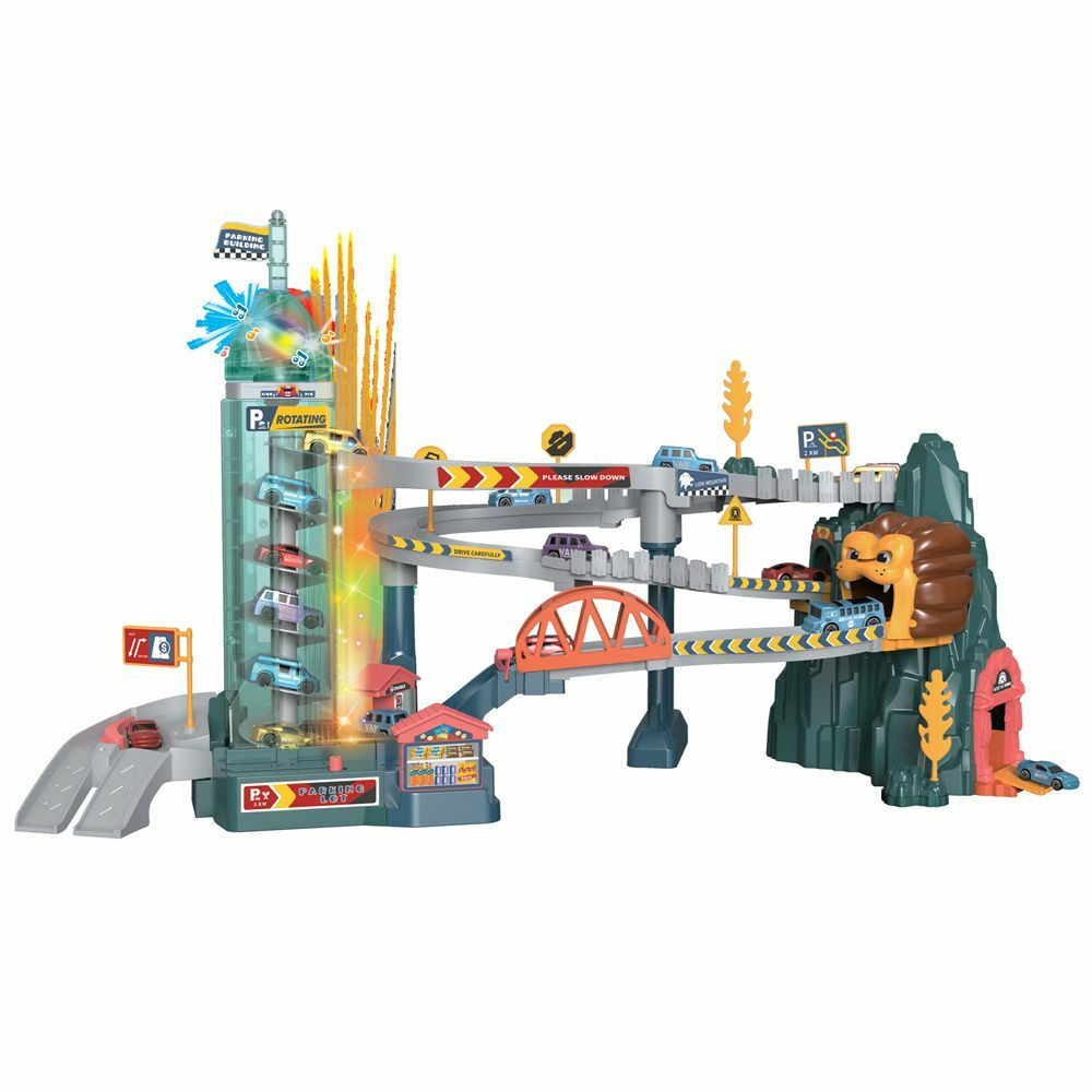 A kalandpályában található egy autók szállítására és tárolására alkalmas mozgatható lift, mely élethű és interaktív élményt biztosít. Fény és hangjelzései emelik a játék éményét, míg a beépített kiegészítők izgalmassá teszik a játékot, miközben száguldhat kisautóival a pályán. A csomagban 4 db játék autó is megtalálható, így azonnal ki is kipróbálhatja az élményekkel teli kalandpályát.