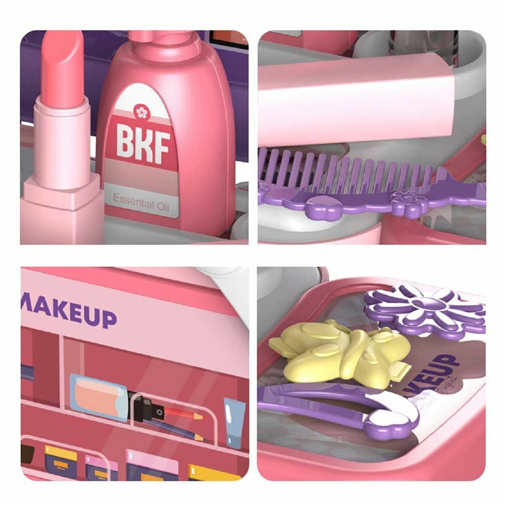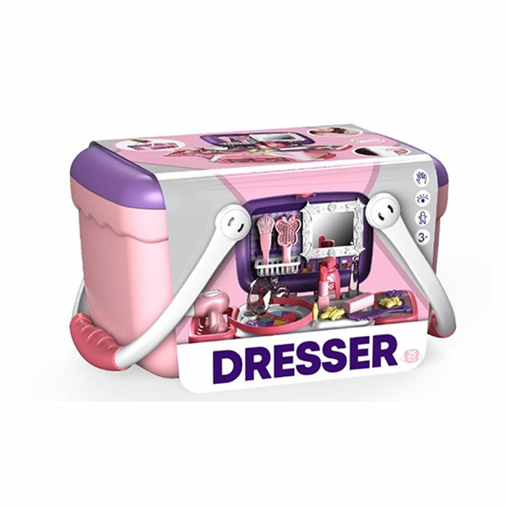 A játék szépség szett hamar minden kislány nagy kedvence lesz! Az összecsukható doboz a felnyitható fogantyúknak köszönhetően könnyen hordozható, így a gyerekek bárhová magukkal vihetik. Kis kosarai és tartói, valamint a felragasztható, piperéket ábrázoló matricák egy igazi szépségszalon hangulatát idézik. Kinyitva számos élethű kiegészítő és kellék található benne, mint például kis tükör, smink paletta, és hajszárító.