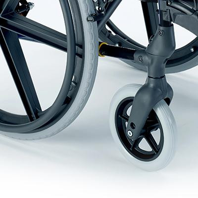 Igazán praktikus és különleges, összecsukható, nagyszilárdságú vázszerkezettel ellátott kerekesszék. Standard felszereltsége a felhajtható és kiemelhető kartartók; a kihajtható és kiemelhető,hosszban fokozatban állítható lábtartók; valamint a felhajtható talptámaszok . Fékezhető, tömör hátsó kerekei 24” méretűek, fekete, kemény műanyag abronccsal és küllőkkel szerelt a rendkívül könnyű súly érdekében. Forgózsámolyos, 200x30-as tömör első kerekei biztonságosan, kényelmesen irányíthatók beltéren. A hátsó kerék tengelyének áthelyezésével állítható a termék súlypontja, ezáltal növelhető a kerekesszék stabilitása.
