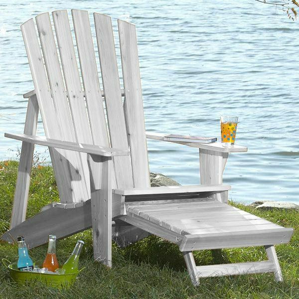 Kerti fa szék kihúzható lábtartóval fehér HOP1001163-2