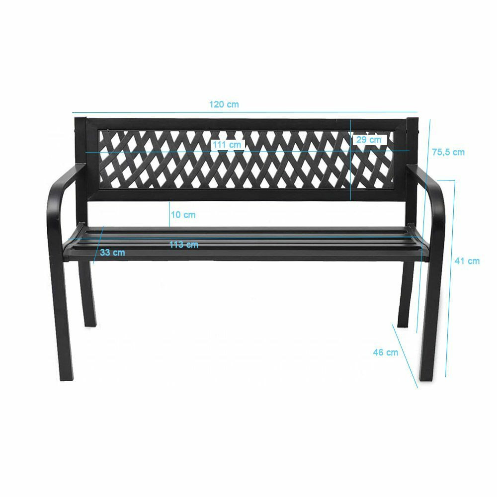 Fém kerti padunkon nyugodtan élvezheted a kerted, teraszod adta pihenés lehetőségét. Stabil, időtálló fém vázának köszönhetően tartós és dizájnos eleme lesz a kertnek. Klasszikus, fekete színével garantáltan belopja magát a szívedbe, bármilyen stílust is képviselsz. Kényelmes méretének köszönhetően két személy számára is ideális. Maximális teherbírása 200 kg.