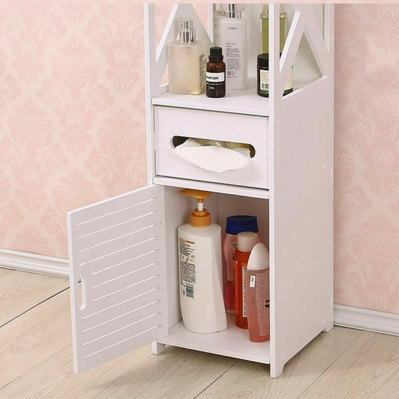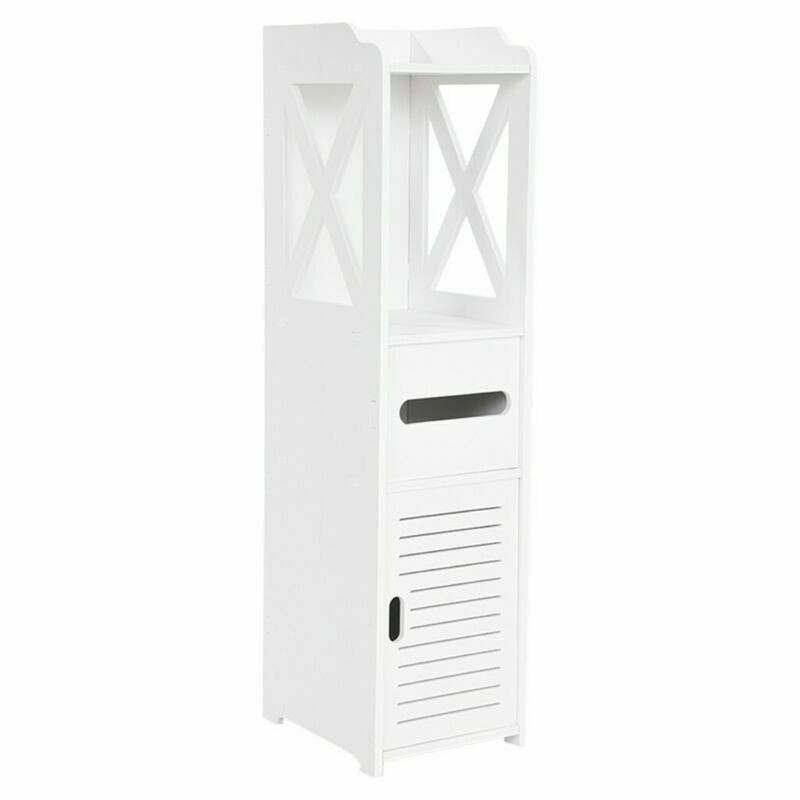 A keskeny fürdőszobai szekrény praktikus eleme egy kisebb fürdőszobának vagy mosdónak. A szekrény három polccal és egy wc papír tartóval rendelkezik, amiken tárolhatjuk a tusfürdőket, samponokat, krémeket, törölközőket és egyéb fürdőszobai felszereléseket. A szekrény tetején található polcra akár virágot vagy dekorációs elemeket is helyezhetünk. A bútor nem csak praktikus, de mutatós darabja is lehet a fürdőszobának. Fehér színének és letisztult formavilágának köszönhetően a legtöbb helyiségbe illik.