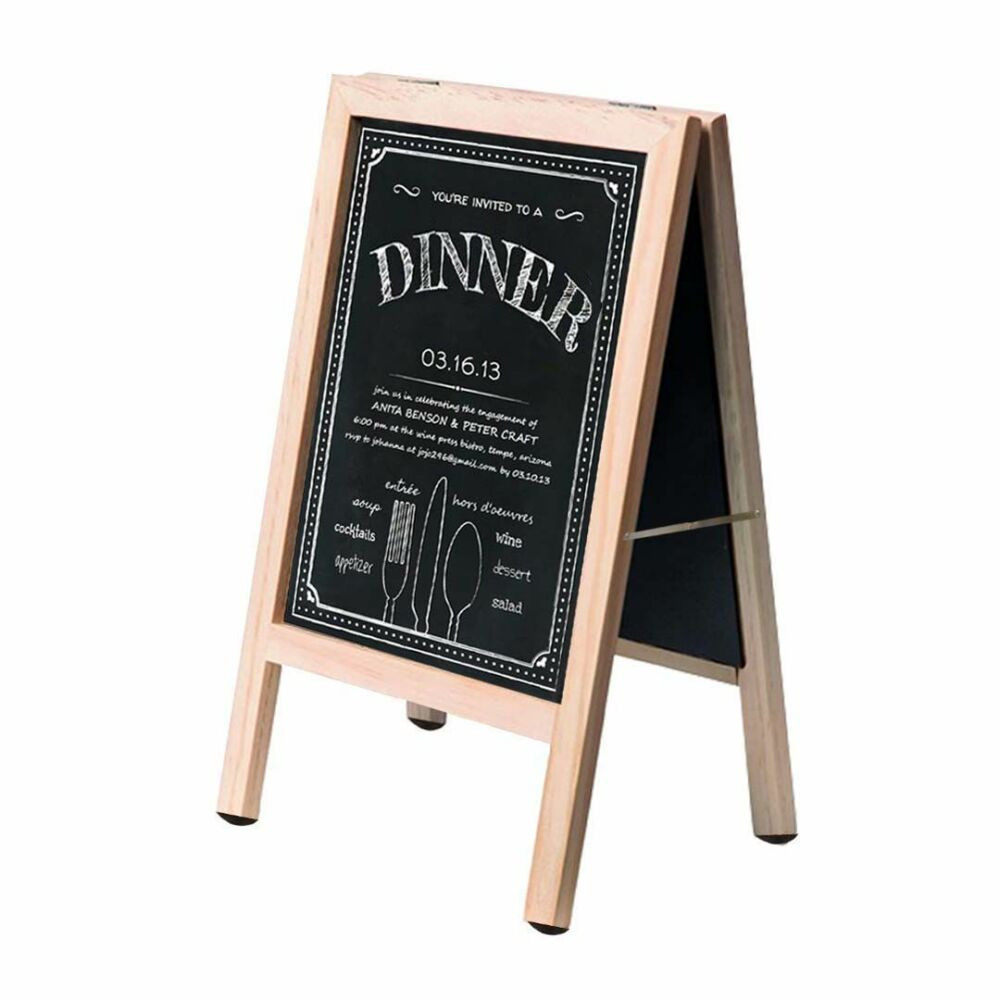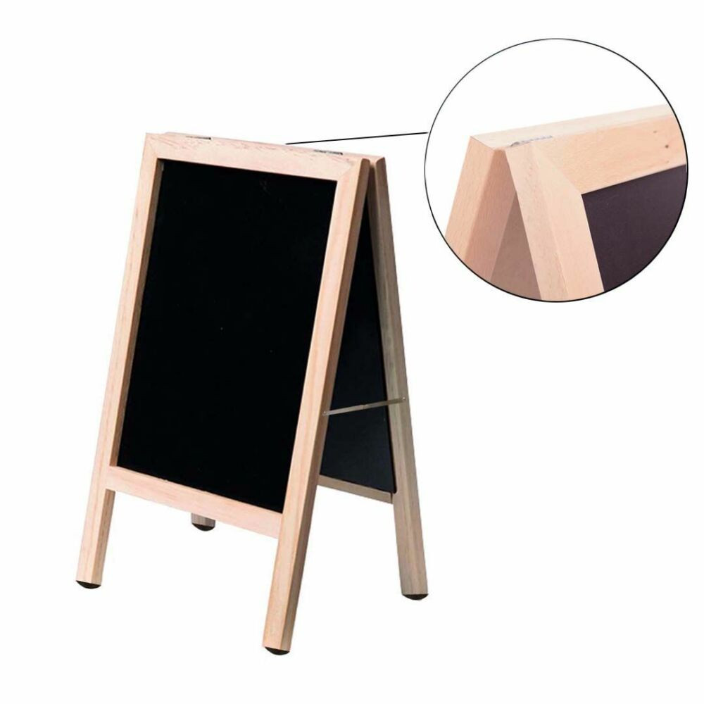 Az összecsukható kétoldalas megállító tábla nagy segítséget nyújthat számodra vállalkozásod mindennapjaiban. Fekete színű dupla írófelületére egyszerű táblakrétával írhatod fel a napi menüt, a nyitvatartást, vagy bármilyen fontos információt. Méretének köszönhetően, egyszerűen hordozható, és áthelyezhető. Nem foglal el szükségtelenül nagy helyet, mégis figyelemfelhívó, és jól látható. Felületét egy száraz szivaccsal könnyedén megtisztíthatod.