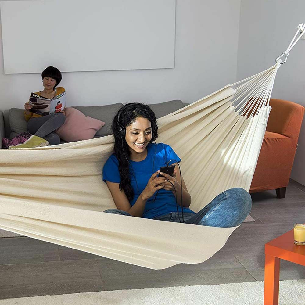 A függőágy igazi kényelmet nyújt a házban, a teraszon és az udvaron is. Kötelek segítségével stabilan felfüggeszthető és két ember számára teljesen ideális. Kempingezések, kirándulások alkalmával is kiváló, ráadásul a fesztiválszezonban is használhatod. Délutáni pihenéshez, relaxáláshoz is ajánljuk, de a gyerekek is örömmel használják majd. Kis méretre összehajtható és a tárolózsák segítségével bárhová magaddal viheted 5 színösszeállításból és két méretben választhatod ki a hozzád leginkább illőt.